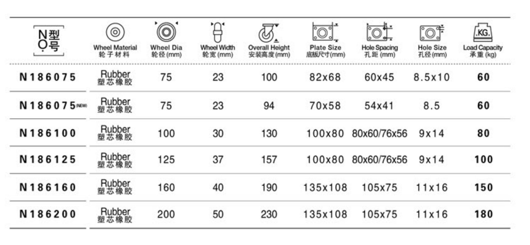 Black Rubber Caster, Roller Bearing