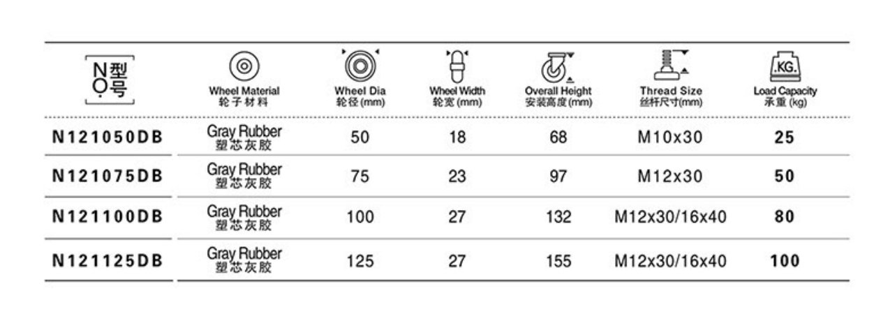 G r a y R u b b e r C a s t e r , P l a i n B e a r i n g