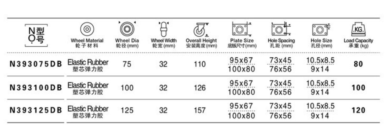 Elastic Rubber Caster,Double Bal Bearing.Roller Bearing is Available