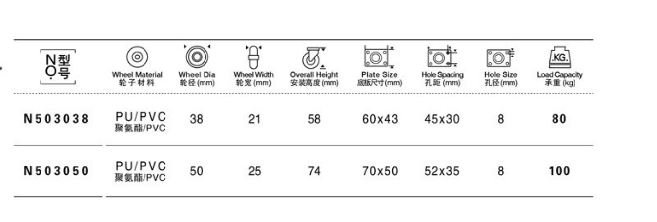 Ruote girevoli con doppio cuscinetto a sfere in PU/TPR